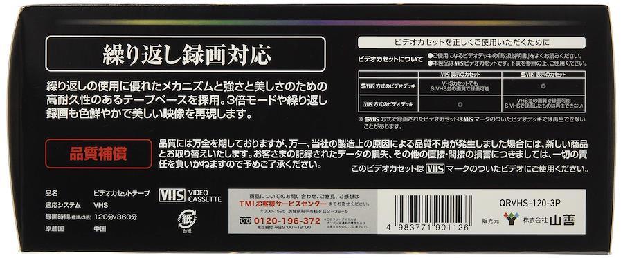 3営業日以内に発送≪新品未開封品≫:山善 キュリオム 録画用 VHSビデオカセットテープ 120分 3本パック