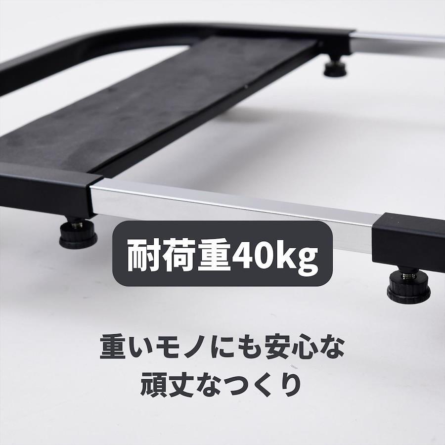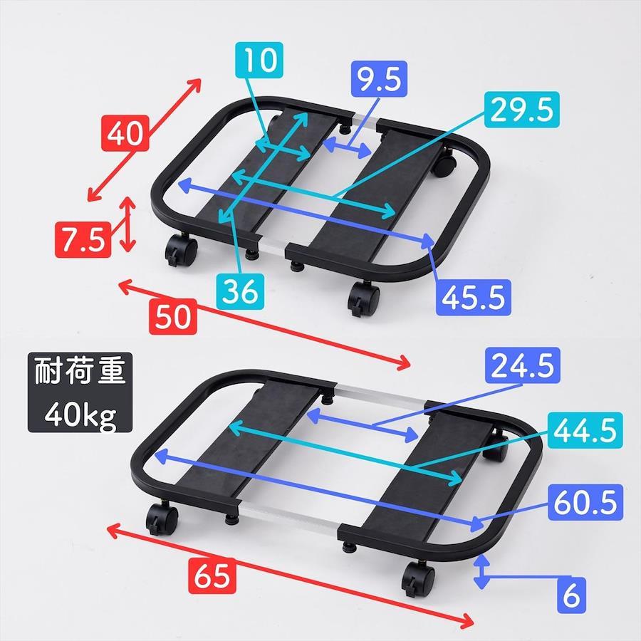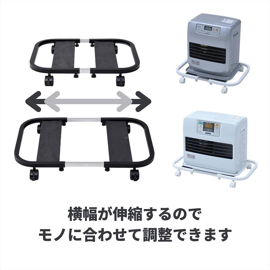 3営業日以内に発送≪新品未開封品≫:●重たい家電や荷物をラクに動かせる、キャスター付きの置台 ●横幅伸縮式で、家電や鉢植えなど、家の中のモノに対応 ●頑丈なつくりで、耐荷重は40kg●キャスター4つのうち、2つはストッパー付き ●プレートには滑り止めパットも付いているので、動かしたときのズレも軽減 ●ファンヒーター対応目安:幅45.5-60.5cm 奥行33.5cm ●置き場プレートサイズ: 幅10 奥行36cm ●最大内寸: 幅45.5-60.5 奥行36 中央隙間9.5-24.5cm ●プレートある箇所の内寸: 幅29.5-44.5 奥行36 中央隙間9.5-24.5cm ●フレーム下隙間: 6cm