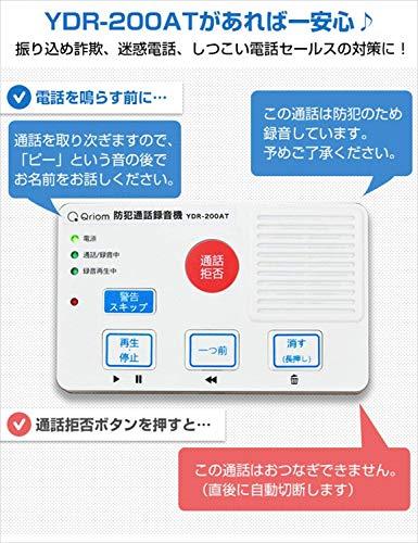 ◆◆公益財団法人 全国防犯協会連合会の詳細はこちら◆◆http://www.bohan.or.jp/●振り込め詐欺やオレオレ詐欺対策に有効な防犯通話録音機。●防犯用品の審査、推奨を行う公益財団法人全国防犯協会連合会の推奨商品。●しつこい勧誘セールス、ストーカー被害の防止にも有効。●かかってきた電話の冒頭に警告メッセージで応答(録音警告、名乗り促しアナウンス)。●取り付け工事不要、電話回線と電話機の間に接続するだけの簡単取付。●電源:DC9V、消費電力:1.2W-4.5W。●対応回線:アナログ2線式。●音声出力:3.5φミニ。●モジュラー4P:電話回線側、電話機側。●保存:内蔵メモリに自動循環上書き保存。●再生仕様:アナログ/音声出力端子。●付属品:モジュラーケーブル(1.0m)、ACアダプター、取扱説明書。●保証期間:お買い上げ日より1年間。(保証の範囲については、取扱説明書をご確認ください)