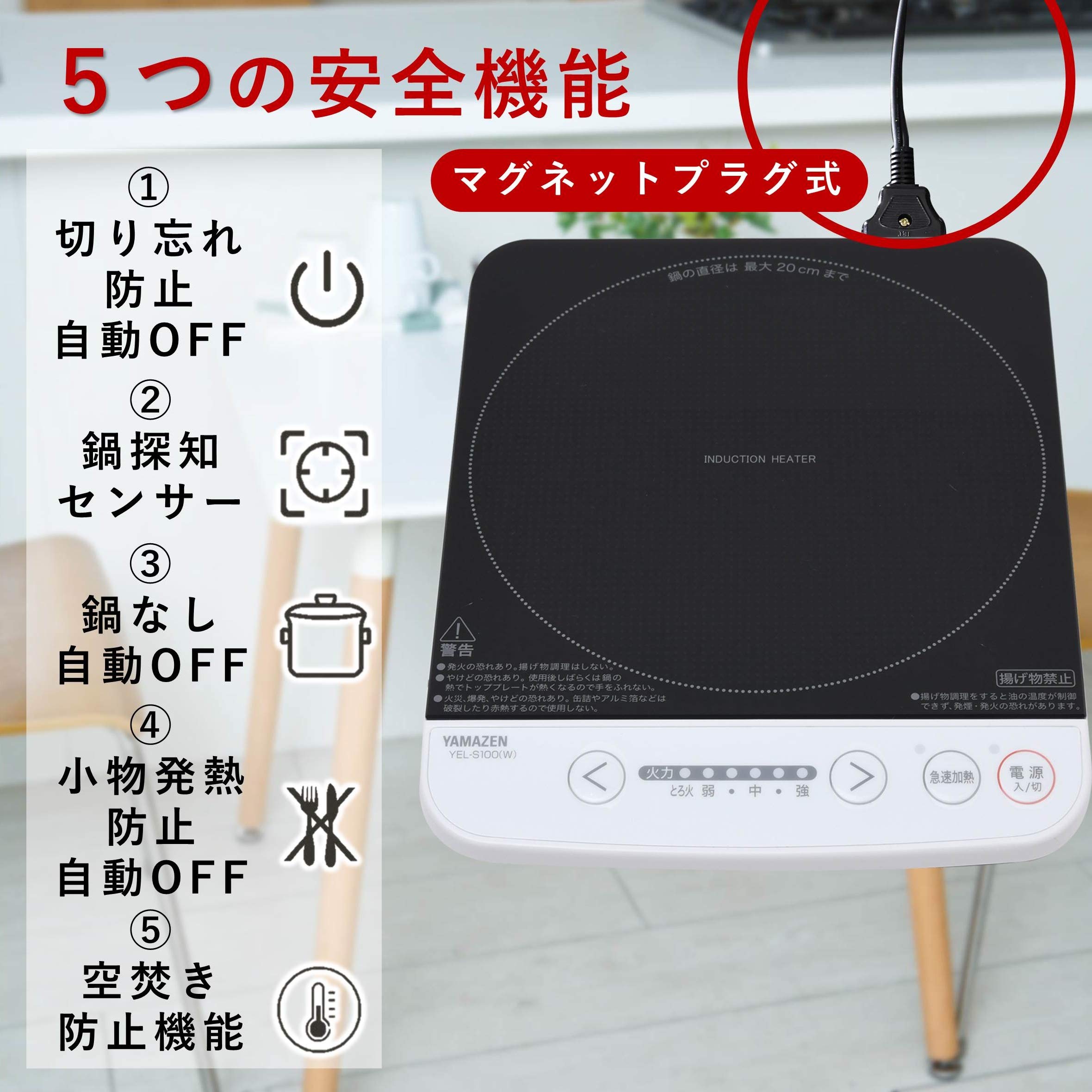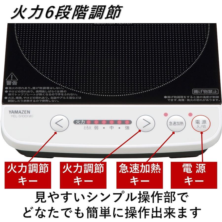 [山善] IHコンロ IHクッキングヒーター 卓上 IH調理器 1000W 火力調整6段階 ホワイト YEL-S100(