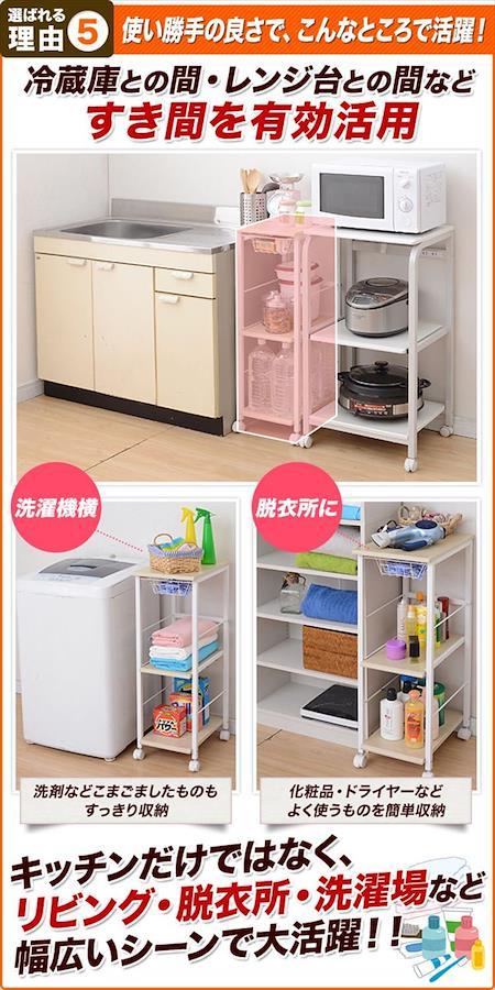 ●すき間収納にぴったりなキッチンワゴン●棚板は取り出し易いスライド式●ペットボトル8本収納可能