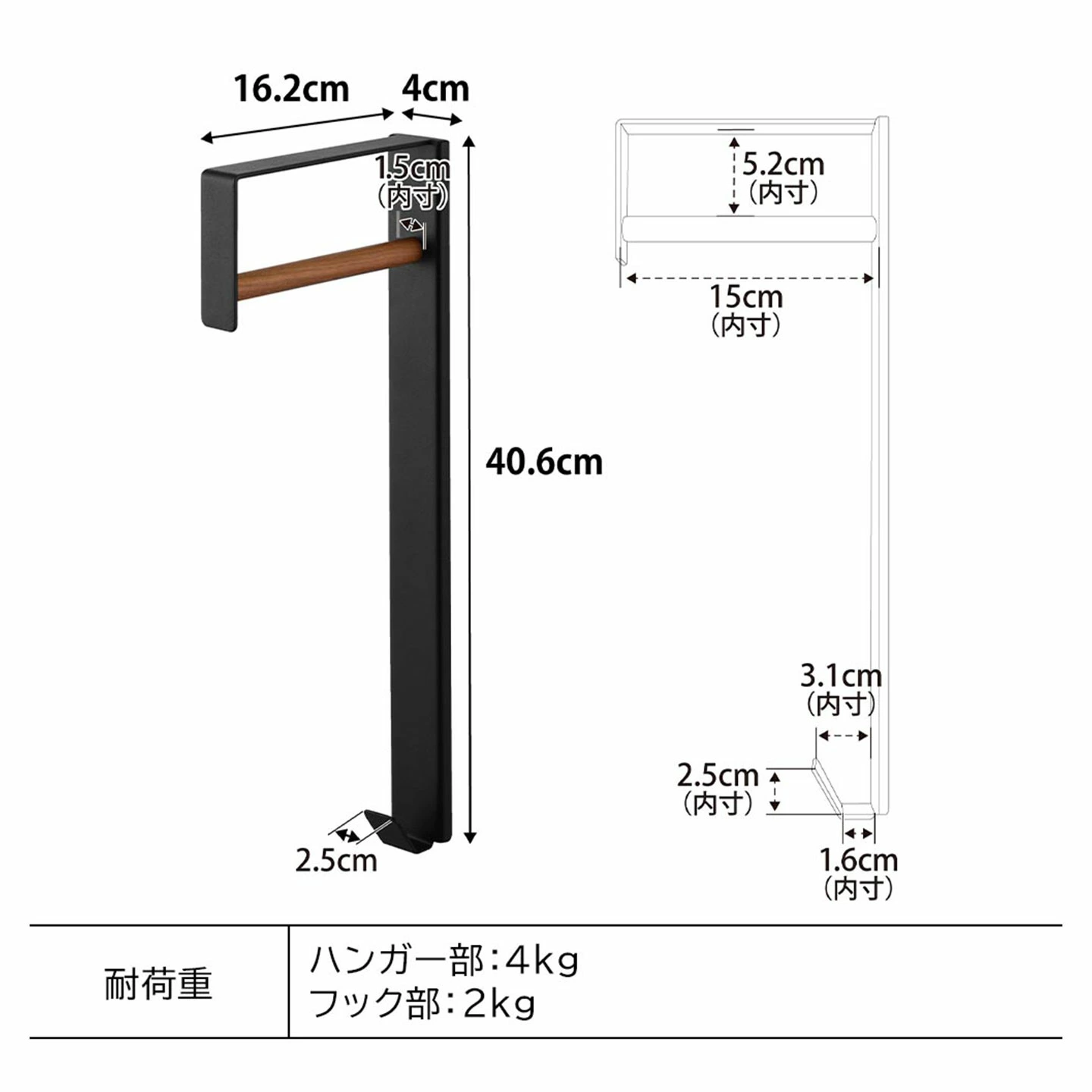 ■サイズ[外寸]本体:W4×D16.2×H40.6cm[内寸]ハンガー部:W1.5×D15×H5.2cmフック部:W2.5×D1.6×H2.5cm