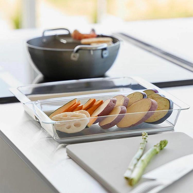 【電子レンジ対応連結できる洗いやすい下ごしらえ調理トレー 深型 2個組】連結できて便利な深型調理トレー2個組です。食材の色移りがしにくく、使いやすいデザインです。トレー同士はフチで連結できる便利な設計で、調理台を汚さず食材を移せます。持ち運びに便利な取っ手付き。食洗機OK。電子レンジOK。冷凍庫OK。