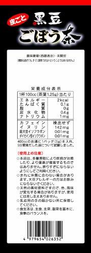 「ごぼう」に黒豆をブレンド。味はごぼうで、香りは黒豆。お食事時にもゴクゴク飲めるノンカフェインで香ばしい風味。 <b>原産国 :</b> ごぼう(中国)黒豆(日本) <b>原材料 :</b> ごぼう 黒豆 <b>内容量 :</b> 5g×18包 <b>カロリー :</b> 1包あたり2kcal <b>商品サイズ (幅X奥行X高さ) :</b> 180×65×180 <b>質量 :</b> 175