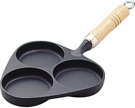 岩鋳 Iwachu 目玉焼3ヶ焼(木柄付) 黒焼付 穴径9.5cm IH対応 南部鉄器 24018