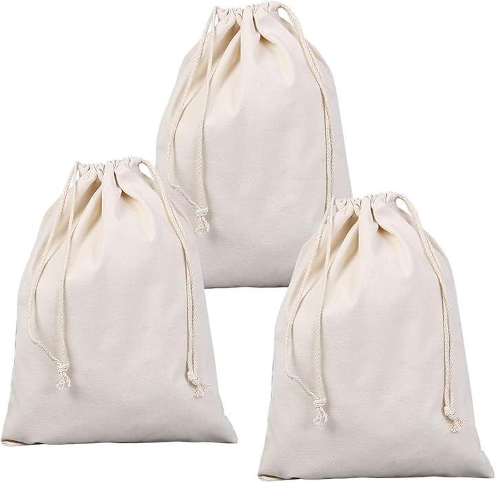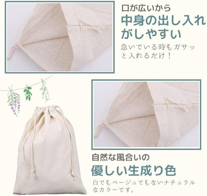 「30x40cm大きめ巾着袋3枚セット」無地で大きいサイズの柔らかい紐付き綿麻袋です。