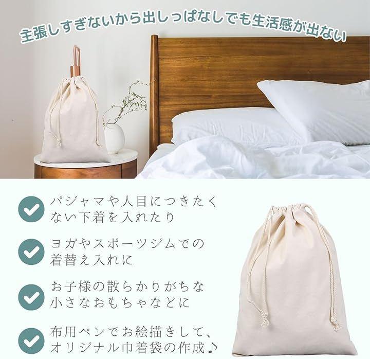 「様々な場面で」インナーバッグ、巾着バッグ(巾着ポーチ)、着替え袋、給食袋、旅行時などの収納袋、大きな袋が必要なとき、布用ペンでオリジナル布袋の制作など、様々な場面でどうぞ。