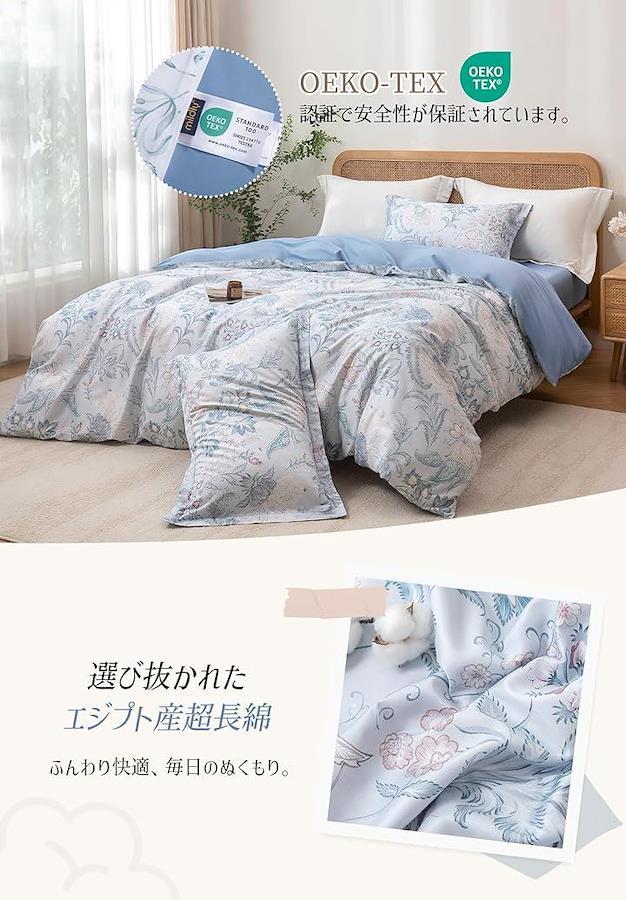 布団カバーセットの上質素材:エジプト産超長綿100%採用、300TC高密度サテン織りがシルクのようななめらかな肌ざわりを実現。