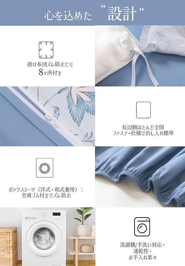 「セット内容詳細」 ・掛け布団カバー:170x210cm(duvet covers) ・マットレスカバー:120x200cm(厚さ30cm対応) ・枕カバー:43x63cmx2枚(エンベロープ式) *サイズは測定方法により±1~2cmの誤差が生じます