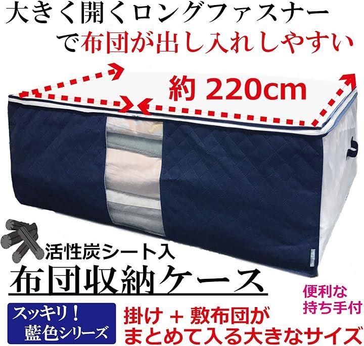「活性炭のチカラで消臭保管」活性炭シートを加工した通気性の良い不織布生地(前面)を使用し、大切な布団や寝具をにおい・ホコリ・汚れから守ります