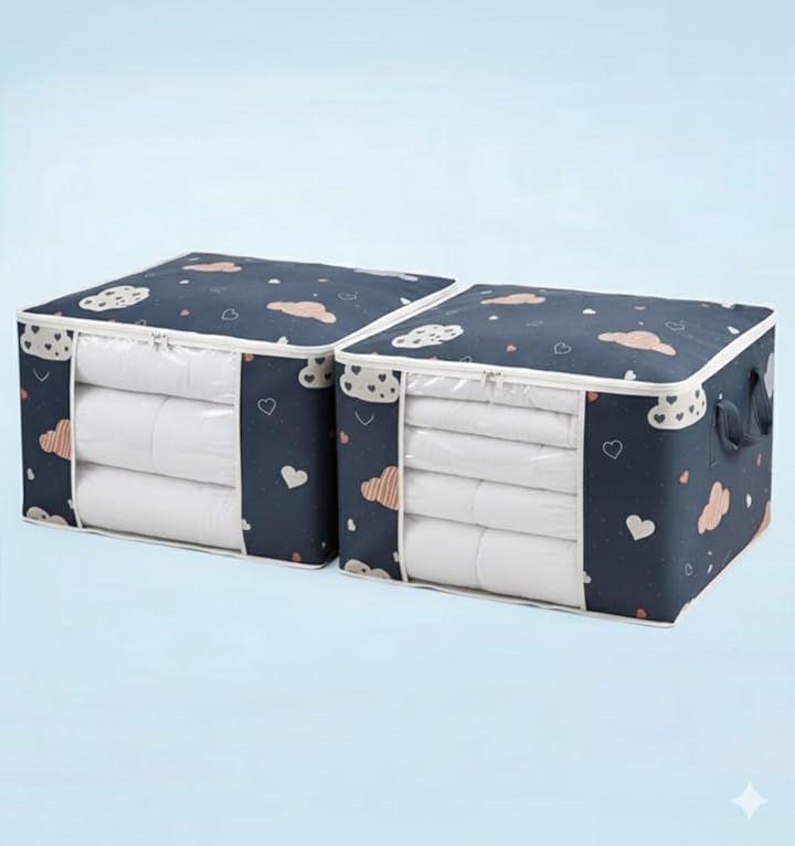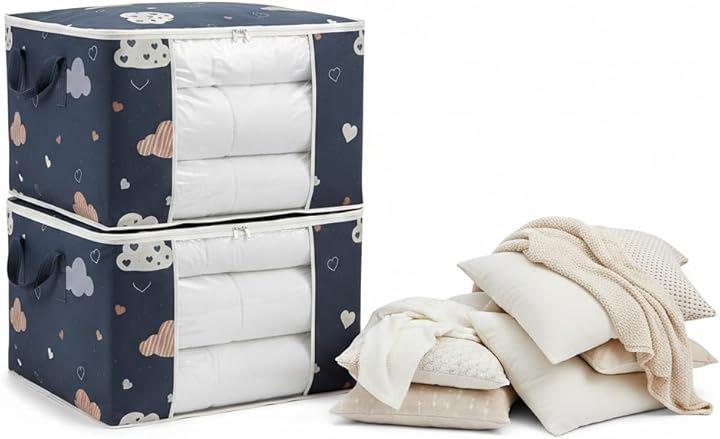 2個セット: 55x35x25cmの大容量布団収納袋が2個セットになっており、掛け布団、毛布、衣類、季節用品などをまとめて収納できます
