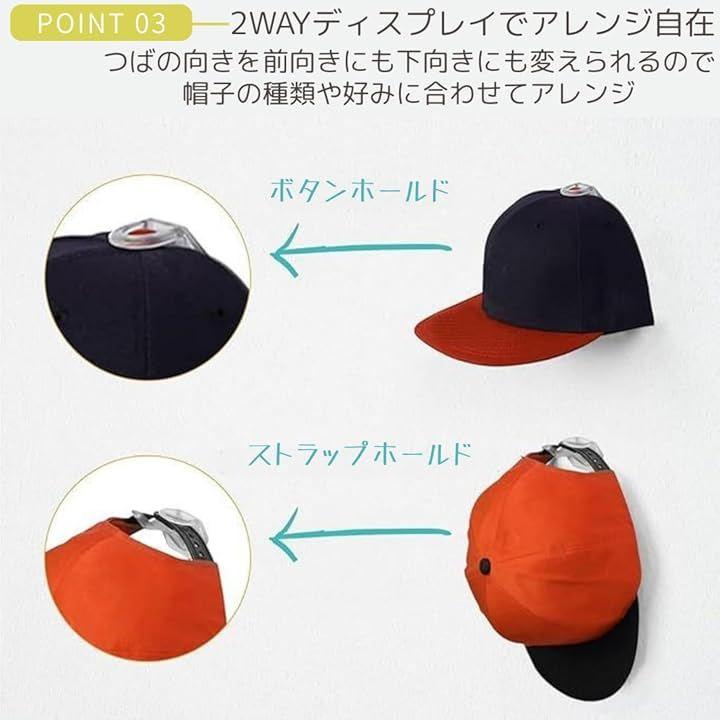 「壁面活用で帽子をすっきり収納」帽子をたくさん持っているけど、収納場所に困っている…そんなあなたにぴったり。最大10個の帽子を吊り下げ式でディスプレイできるので、場所を取らず、スタンドタイプのようにスペースを圧迫しません。