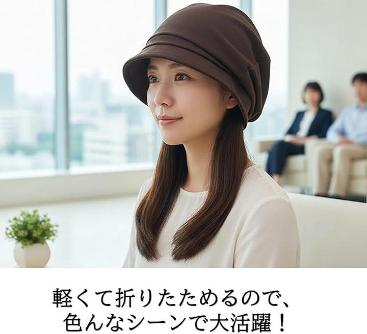 この帽子は、ゆったりとしたデザインが特徴で、つばがあることで顔をしっかりと日差しから守ります。