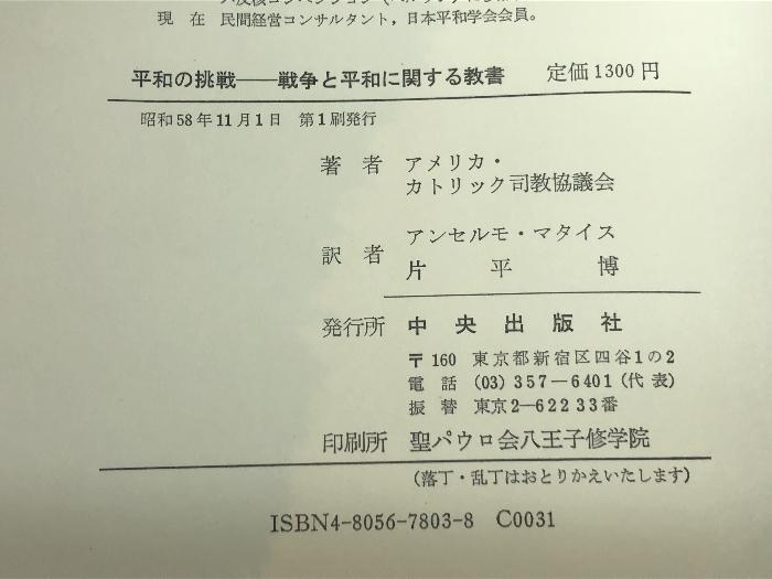 商品名:平和の挑戦: 戦争と平和に関する教書 神の約束と我々の応答 サンパウロ アメリカ カトリック司教協議会