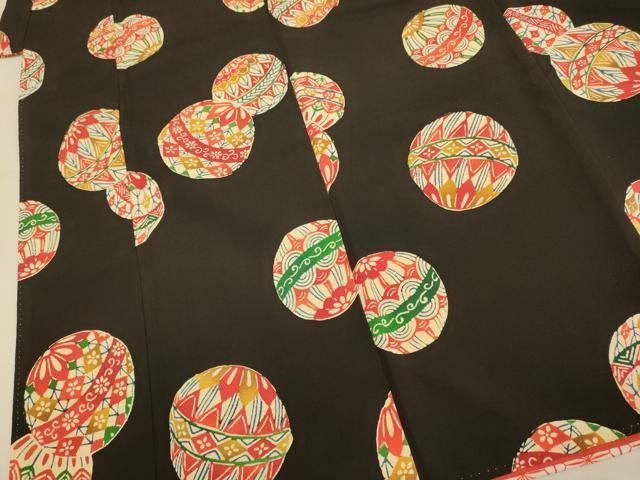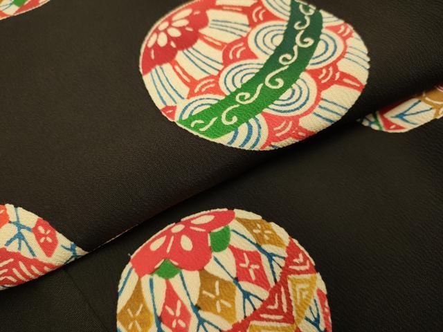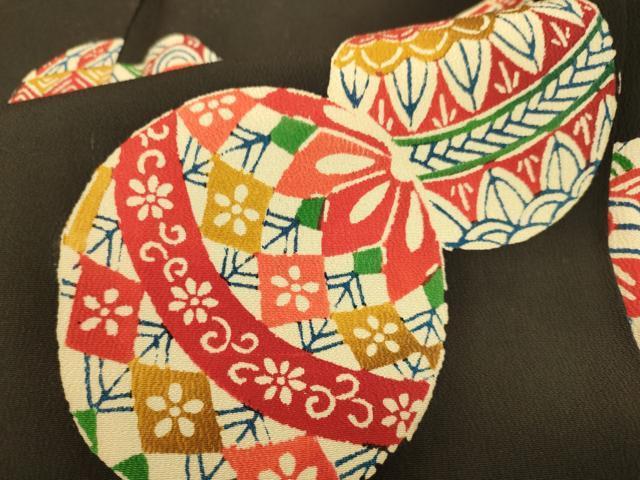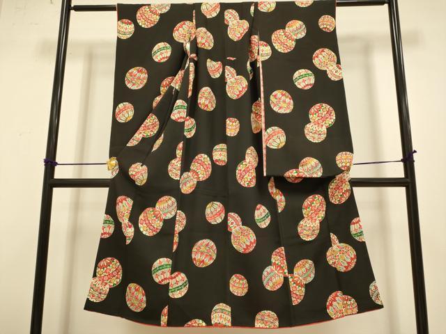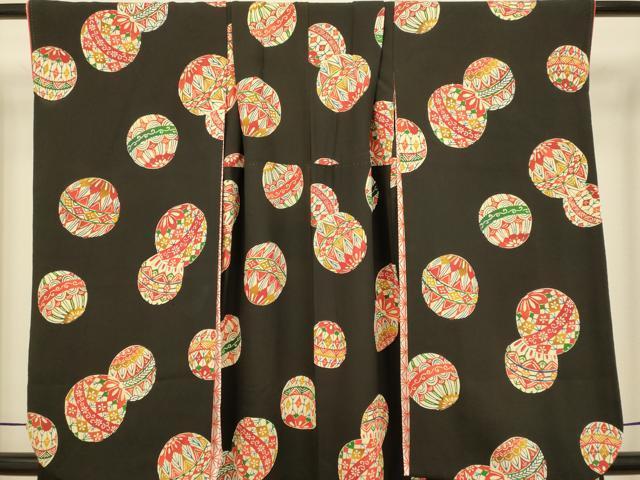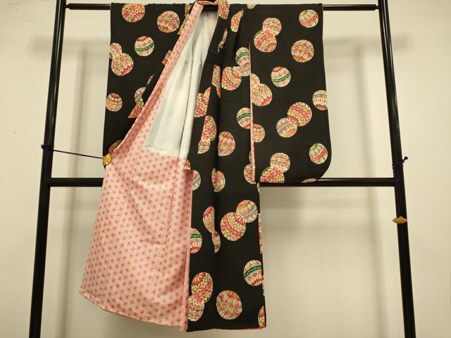 平和屋本店∵極上 女の子 十三参り 子供 祝着 型染 毬 黒地 逸品 DZAB3251kh6