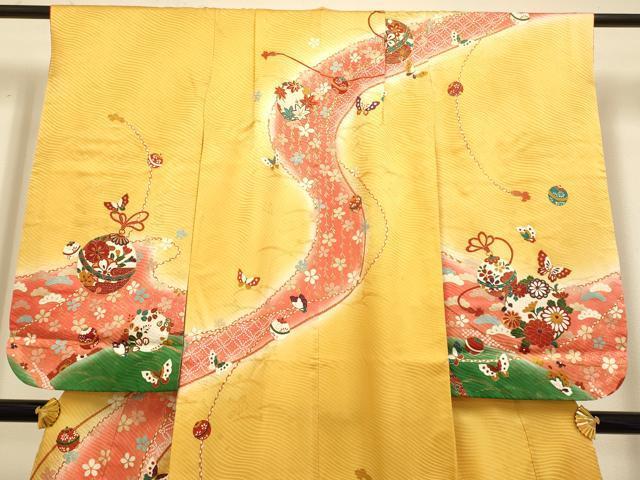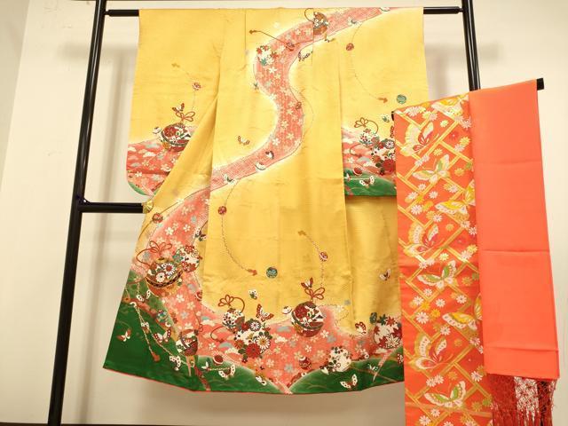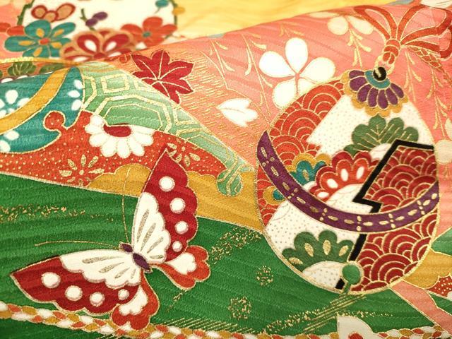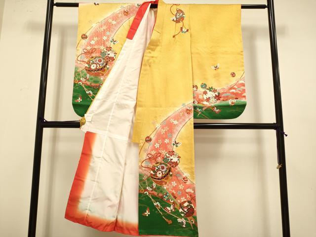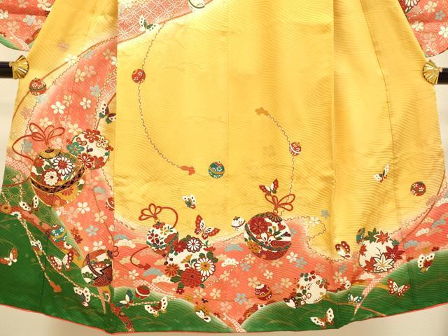 平和屋本店∵極上 女の子 十三参り 子供 祝着・袋帯・しごきセット 駒刺繍 舞蝶鈴花文 暈し染め 金彩 逸品 DZAB3241kh6