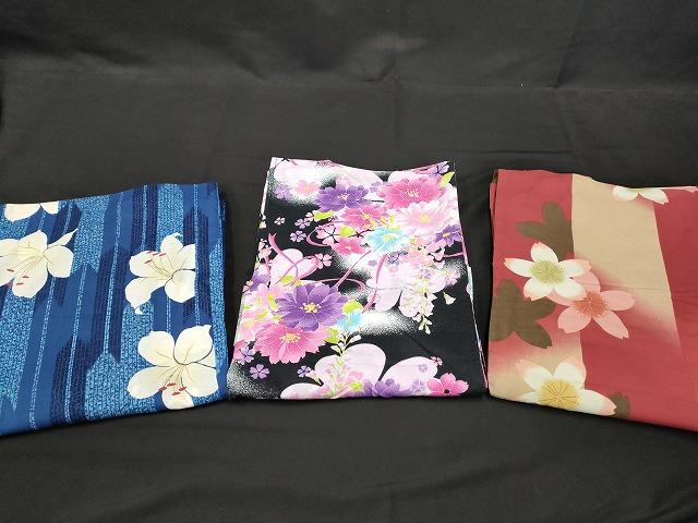 平和屋本店■浴衣 まとめて 3点 花柄 百合 など 着用可能多数 ppp2616 km