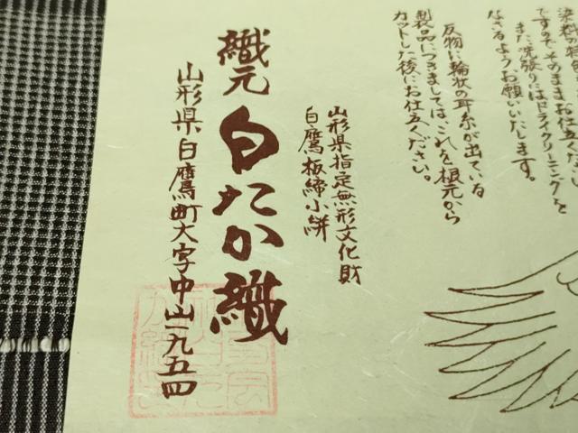白鷹御召(しらたかおめし)は山形県で生産されている縦緯絣です。