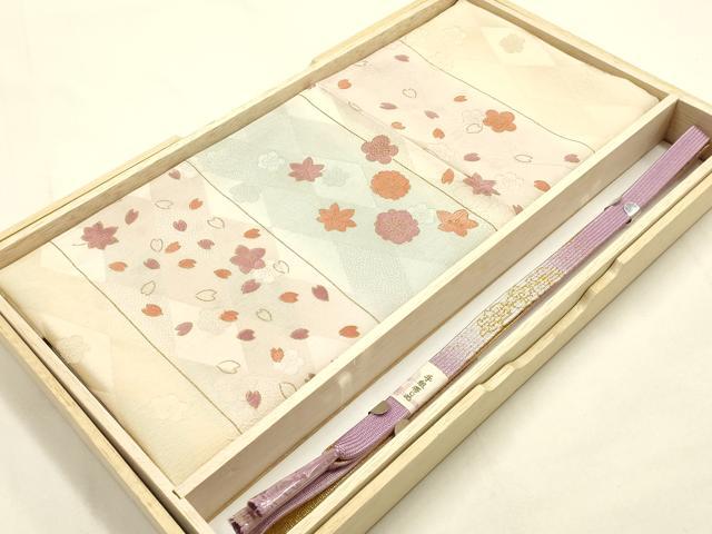 平和屋本店●和装小物 帯締め・帯揚げセット 高麗組 横段舞花文 金糸 金彩 逸品 未使用 AABI2261ay