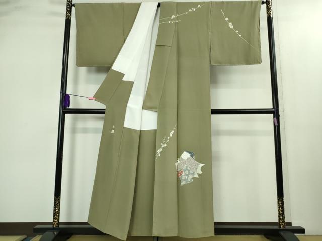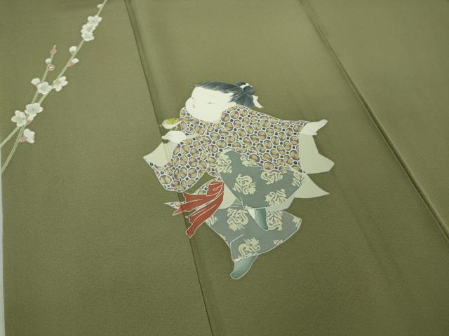平和屋本店●極上 二代目・由水十久 本加賀友禅 訪問着 梅 人物文 青白橡色地 逸品 DZAB2431kh6