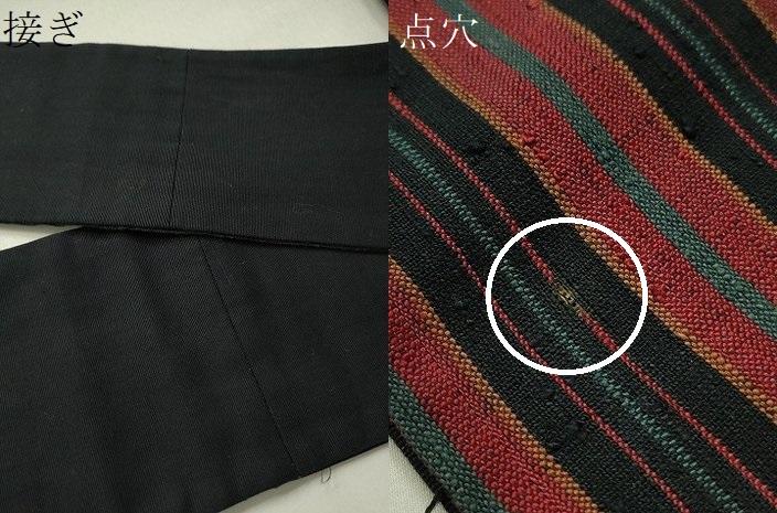 端から120.5cmほどの所に点穴・裏地に接ぎがございますが