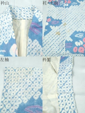 状態は接写画像のように衿山・衽・上前・左袖・衿裏に薄い汚れがございますが