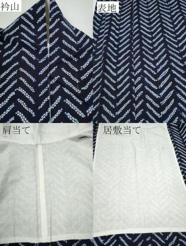 衿山に薄い汚れ、表地所々・肩当て・居敷当てに薄いシミがございます。