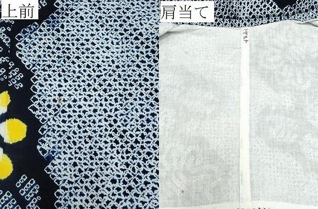 状態は接写画像のように上前に薄いシミ、衿裏にペン書き・薄いシミがございますが