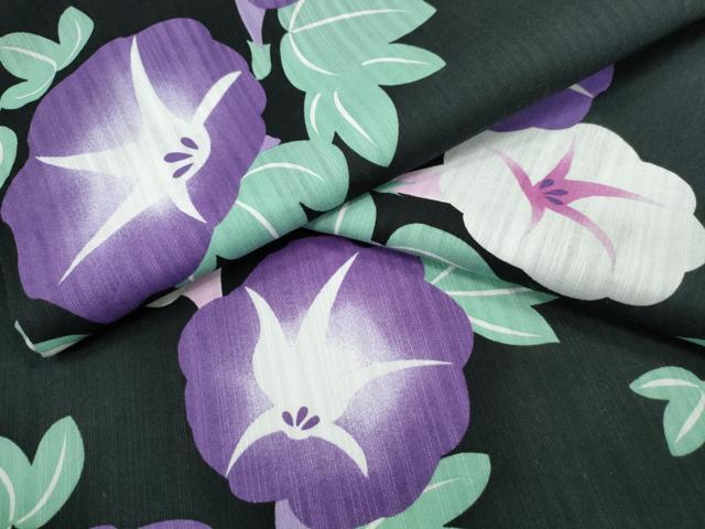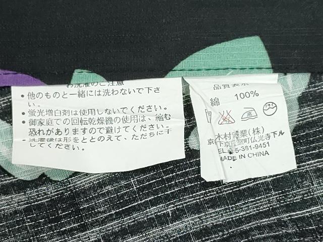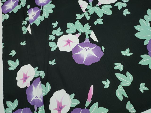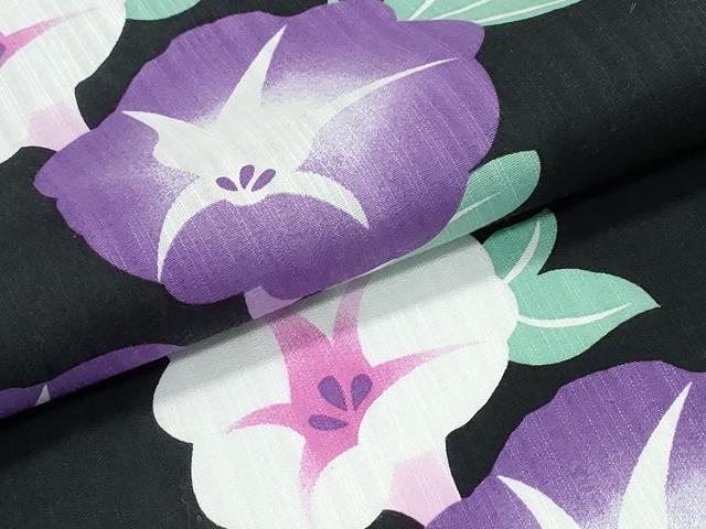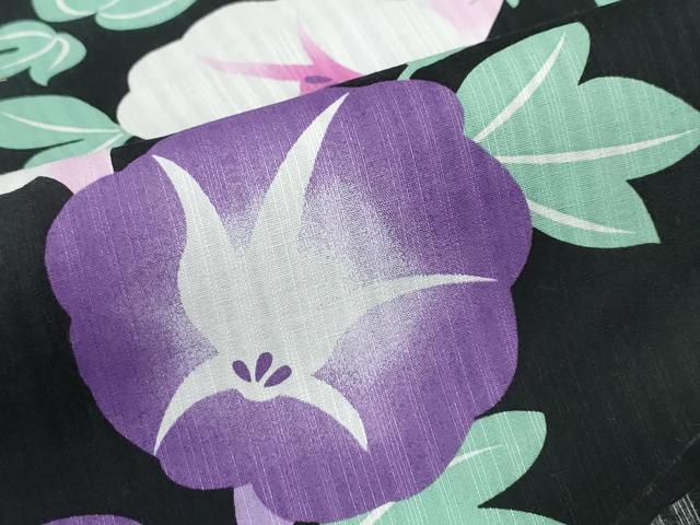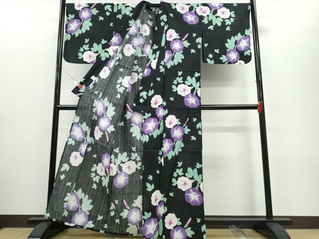 平和屋着物∴夏物 浴衣 朝顔 黒地 綿 逸品 CABE8867ng