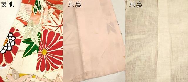 着物【正絹】の状態は接写画像のように表地所々・胴裏に薄い汚れ・経年によるアクがございます。