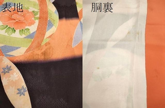 着物【正絹】の状態は接写画像のように表地所々・胴裏に薄い汚れがございます。
