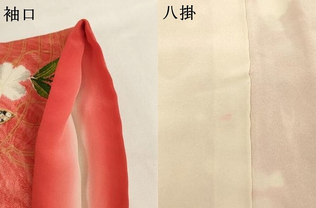 着物【正絹】の状態は接写画像のように袖口・八掛に汚れがございますが