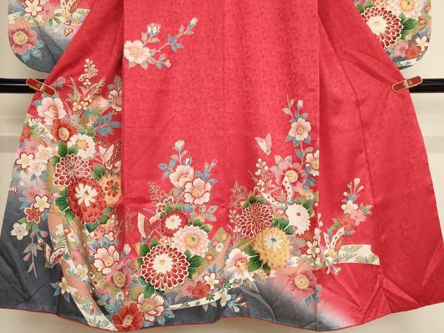 平和屋着物∵女の子 十三参り 子供 祝着 花蝶文 暈し染め 金彩 逸品 AABB5662ja