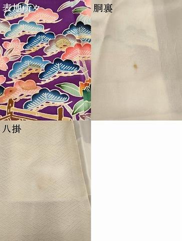 着物【正絹】の状態は接写画像のように表地所々・胴裏・八掛に汚れがございます。