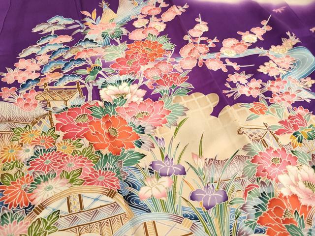 平和屋着物∵女の子 十三参り 子供 祝着 風景花文 暈し染め 金彩 正絹 逸品 AAAW6972ja