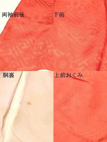 状態は接写画像のように両袖前後・下前・胴裏・上前おくみに薄い汚れがございますが