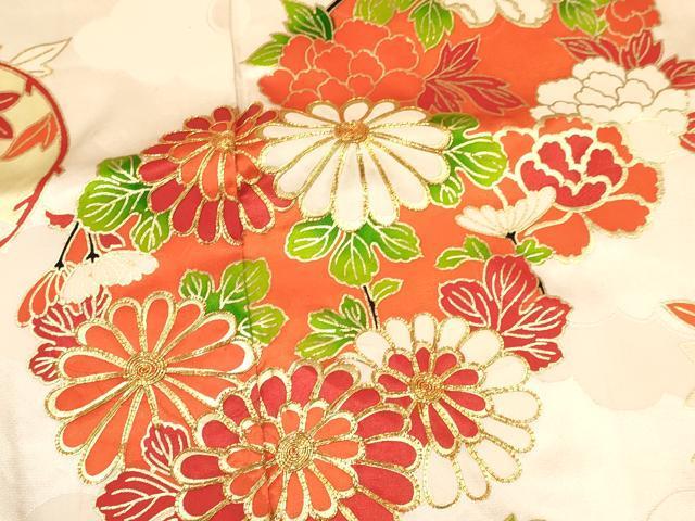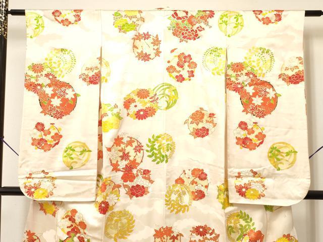平和屋着物∵女の子 十三参り 子供 祝着 駒刺繍 花丸文 金彩 逸品 DABA3523ma