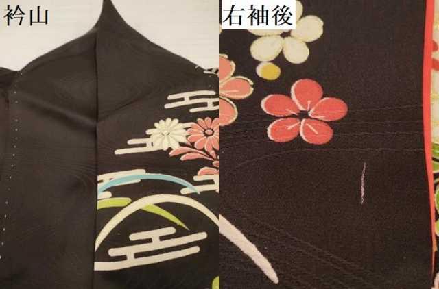 着物【正絹】の状態は接写画像のように衿山・右袖後に薄い汚れがございますが