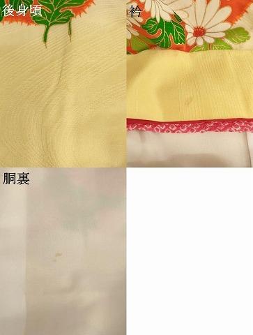 着物【正絹・嘘つき襦袢】の状態は接写画像のように後身頃・衿・胴裏に薄い汚れがございますが