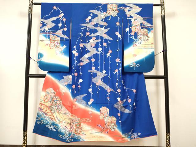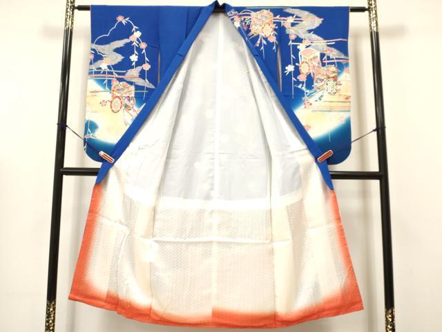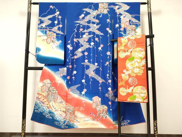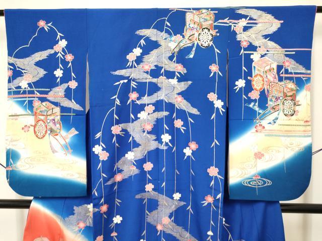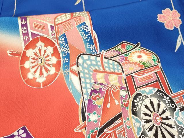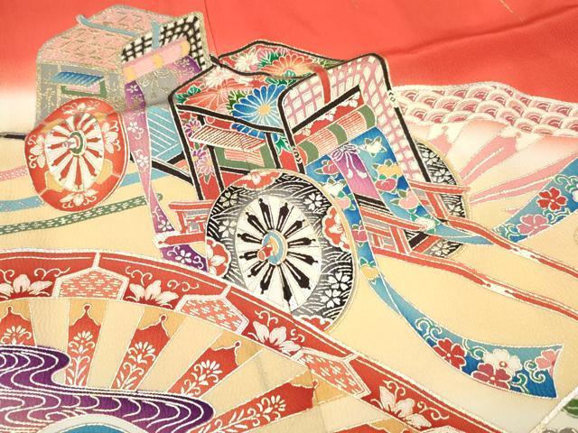 平和屋着物∵女の子 十三参り 子供 祝着・袋帯セット 片輪車 御所車花文 暈し染め 金銀彩 逸品 DAAW2712ma