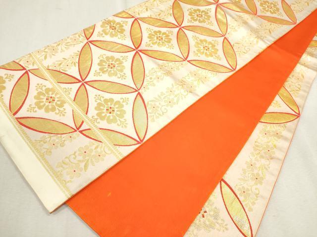 全通柄袋帯【交織・芯なし】の状態は接写画像のように太鼓上部・裏地に薄い汚れがございますが