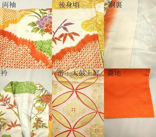 平和屋着物∵女の子 十三参り 子供 祝着・袋帯セット 絞り 雲取り枝花文 逸品 CAAV9301ze