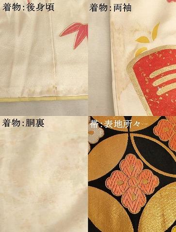 着物【正絹】の状態は接写画像のように後身頃に薄い汚れ、両袖に汚れ、胴裏にシミがございますが