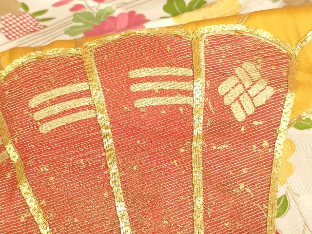 袋帯【化繊・芯なし】の状態は接写画像のように表地所々に色褪せがございます。