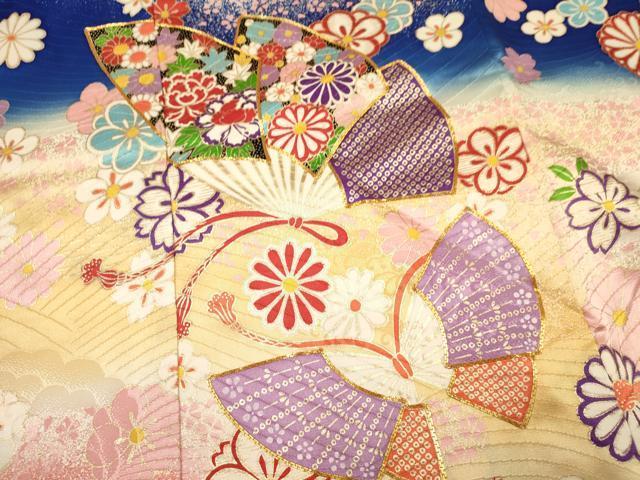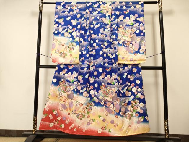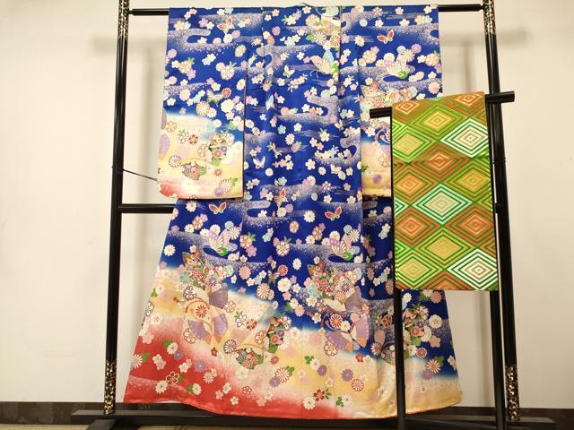 平和屋着物∵女の子 十三参り 子供 祝着・袋帯セット 駒刺繍 花蝶文 暈し染め 金彩 逸品 DAAS9066ma