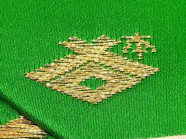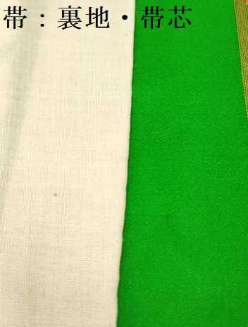 袋帯【正絹】の状態は接写画像のように裏地・帯芯に薄い汚れがございますが