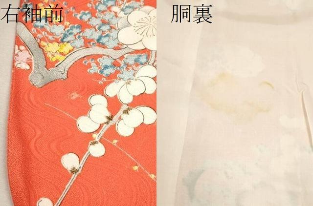 着物【正絹】の状態は接写画像のように右袖前・胴裏に薄い汚れがございますが