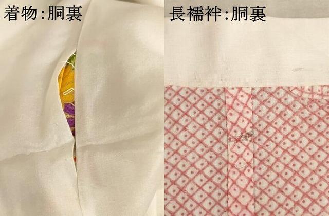 着物【正絹】の状態は接写画像のように胴裏に糸解けがございますが