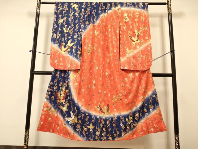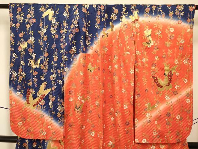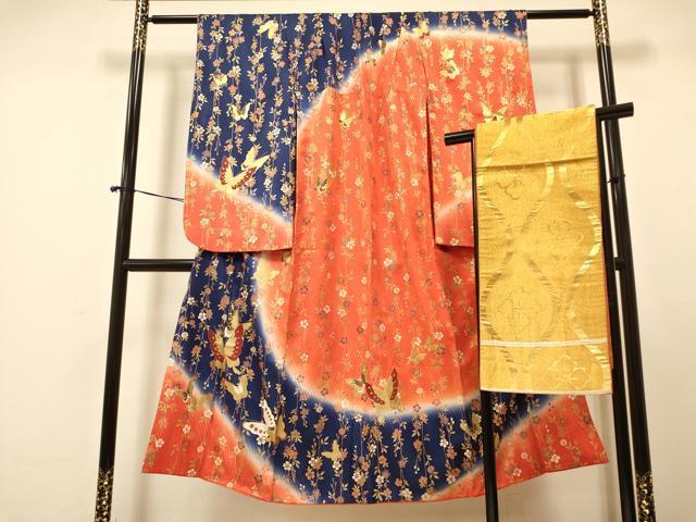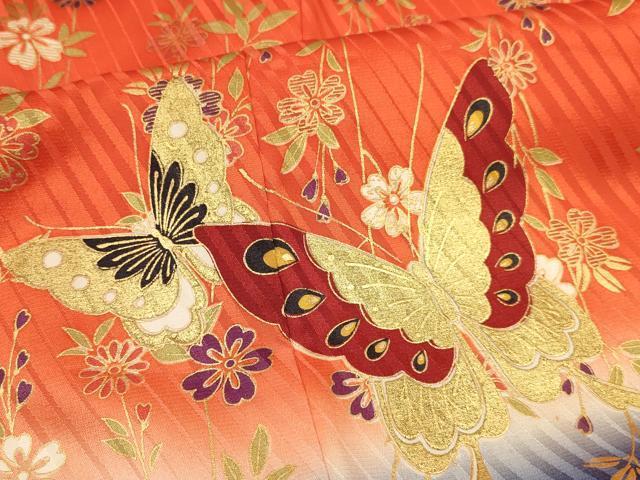 平和屋着物∵女の子 十三参り 子供 袋帯セット 花蝶文 暈し染め 金彩 逸品 DAAR6452ma