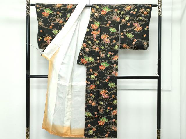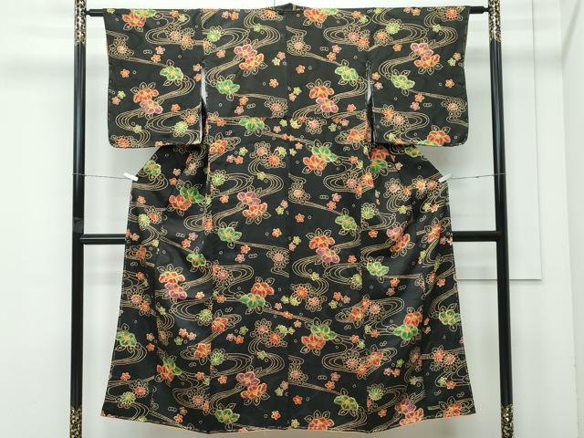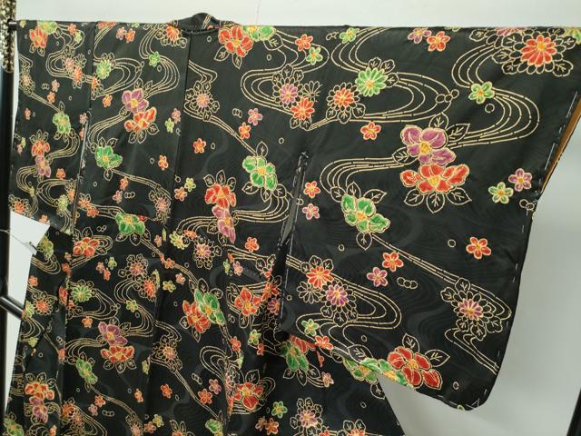 平和屋着物∵極上 女の子 十三参り 子供 祝着 絞り 流水花文 黒地 逸品 未使用 CZAA5010s6